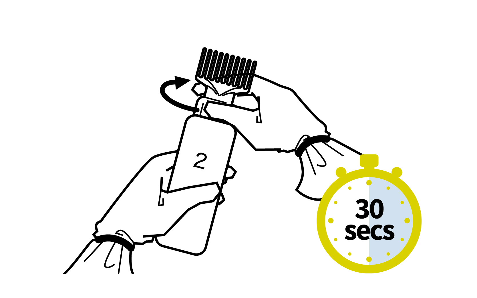 Immediately remove the white cap and firmly attach Comb-Nozzle. Then leave for 30 seconds. After leaving it for about 30 seconds, start applying, immediately and do not stop halfway through the process.