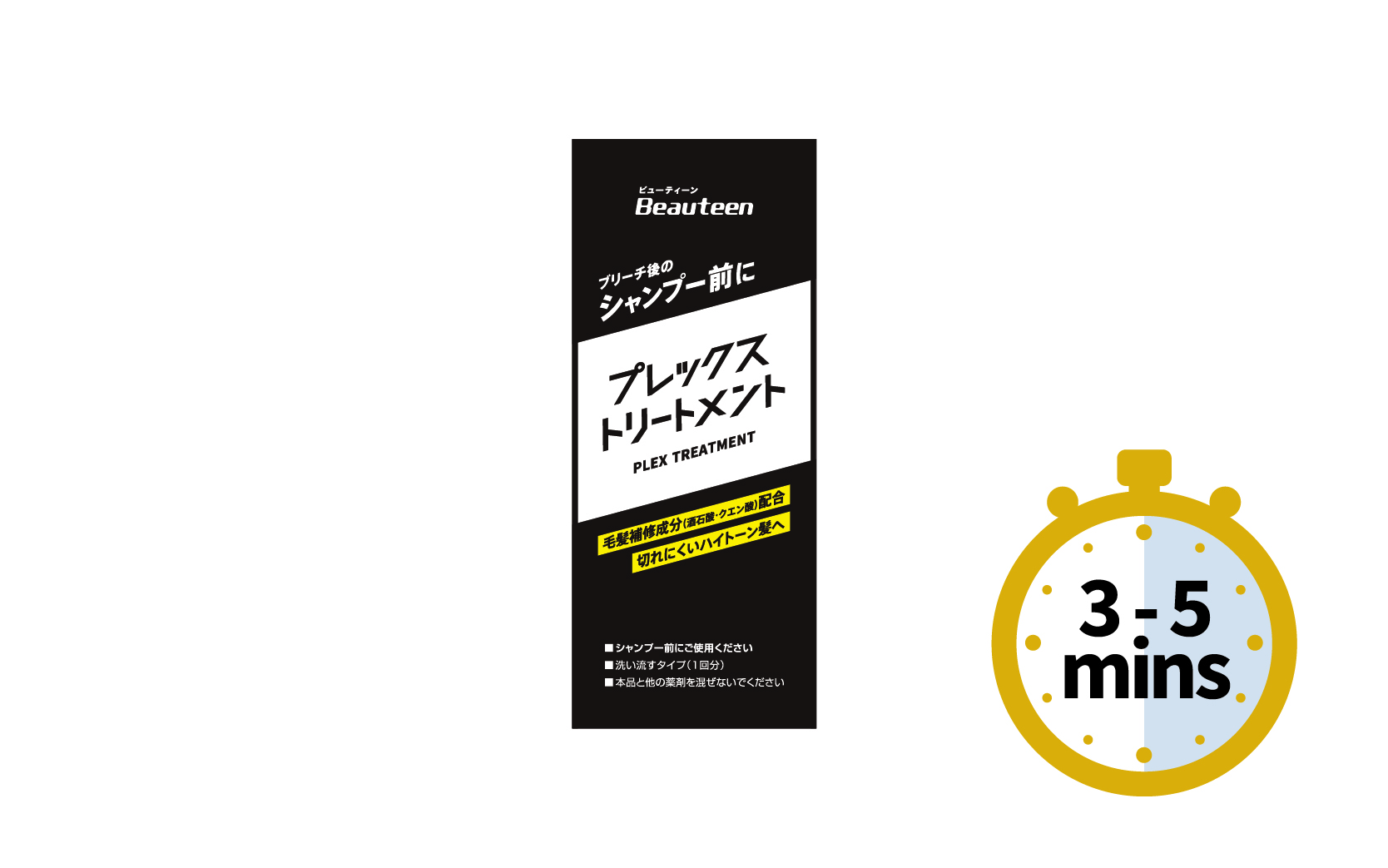Rinsing hair thoroughly with warm water. After towel dry, apply Plex treatment. Leave on for 3 -5 mins.