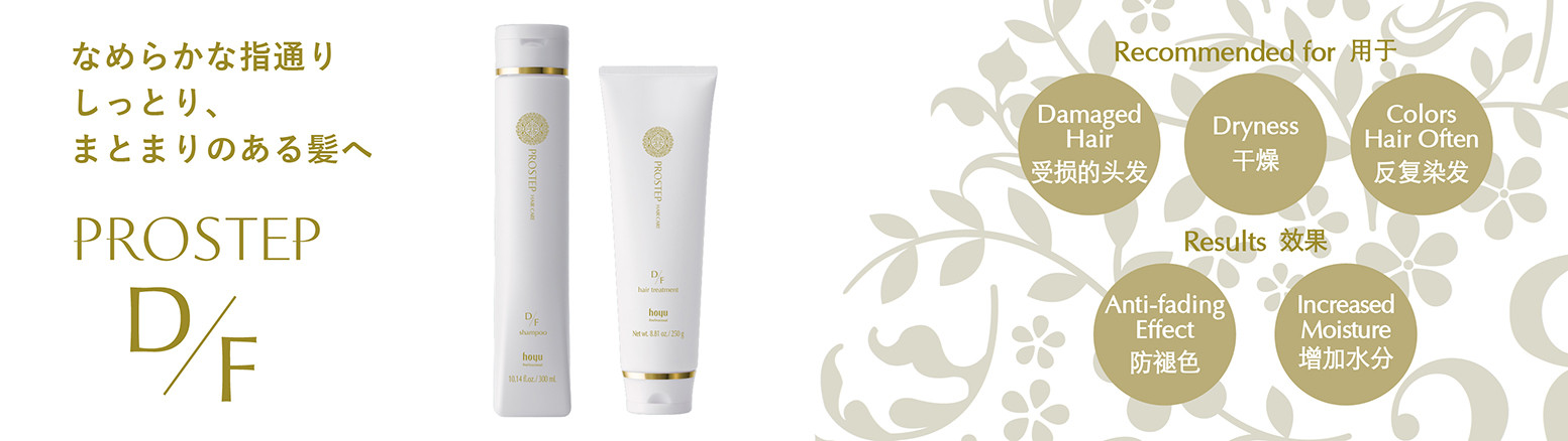 Prostep hair care addresses hair and scalp concerns. The range focuses on the continued hair care at home with color care function that reduces damage and prevents color fading. In addition, Prostep hair care also manages the deterioration of hair quality and scalp concerns caused by aging.