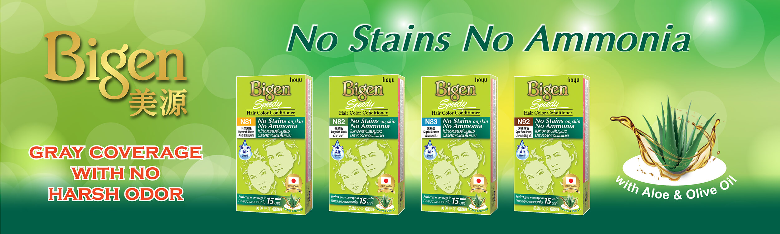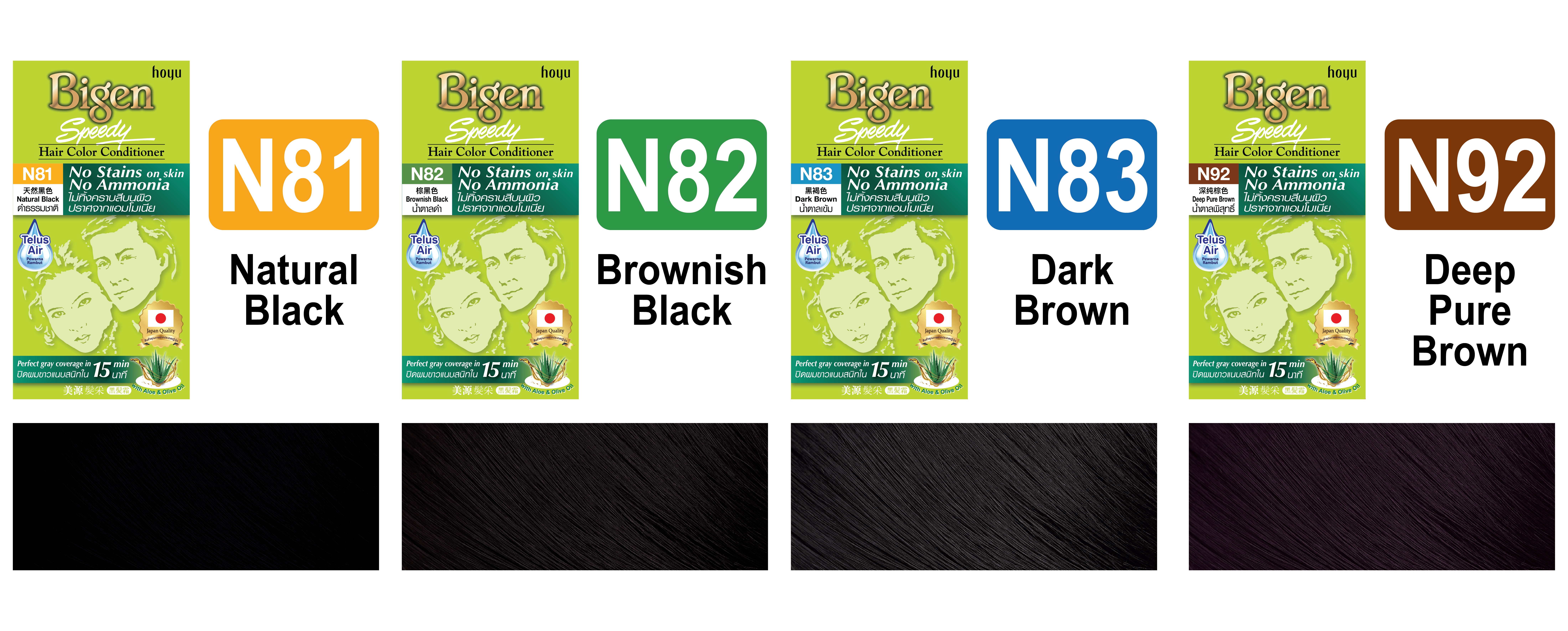 An innovative advanced formula from Japan, which contains No Ammonia and promises No Stains on skin. Eliminating worries about unsightly marks along the hairline and pungent odor. It completely covers gray in 15 minutes while delivering a Natural Looking result that is not overly blackish.