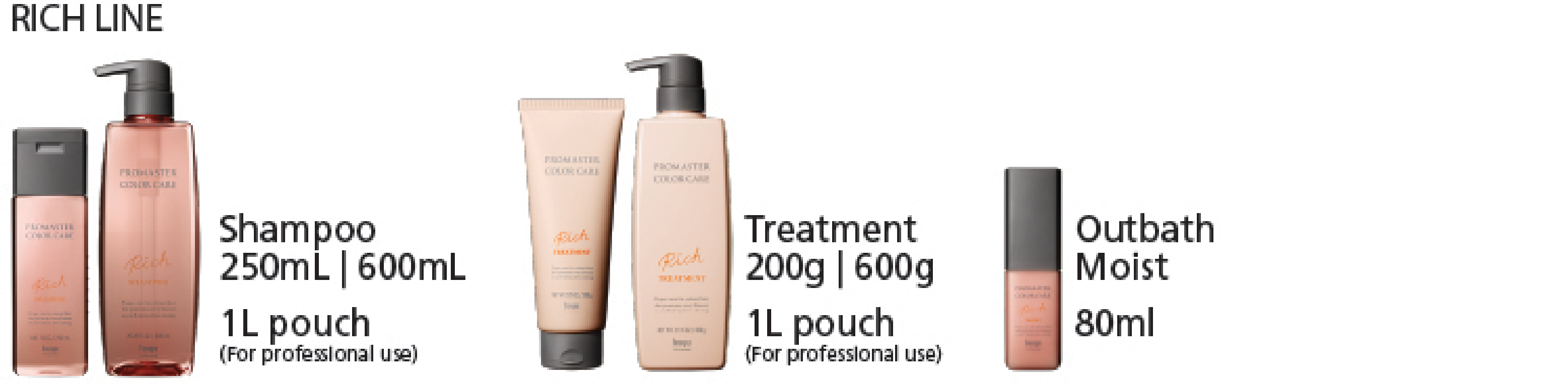 Fulfilling the promise of beautiful hair. PROMASTER COLOR CARE is for all women who wish to maintain beautiful colored hair and for professional hairstylists who wish to continuously nurture beautifully colored hair with the In-salon Treatment Technique.
