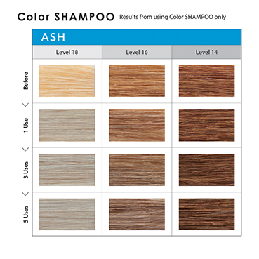 Professional salon quality color shampoo specifically formulated to reduce brassiness, freshen faded colored hair and enhance cool tones to achieve a sophisticated ashy hair color.