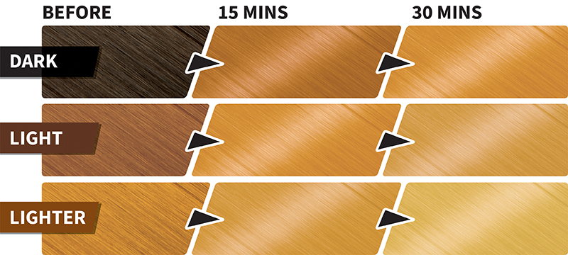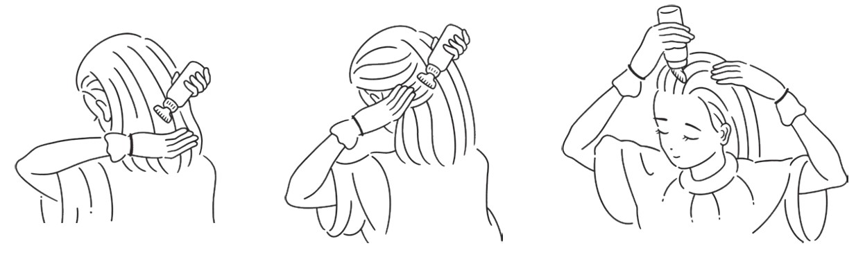 Apply from the nape of the neck as well as the areas where it is difficult to lighten. Apply the mixture evenly to the entire hair, as if combing your hair while releasing the mixture. Leave on 10 - 30mins.