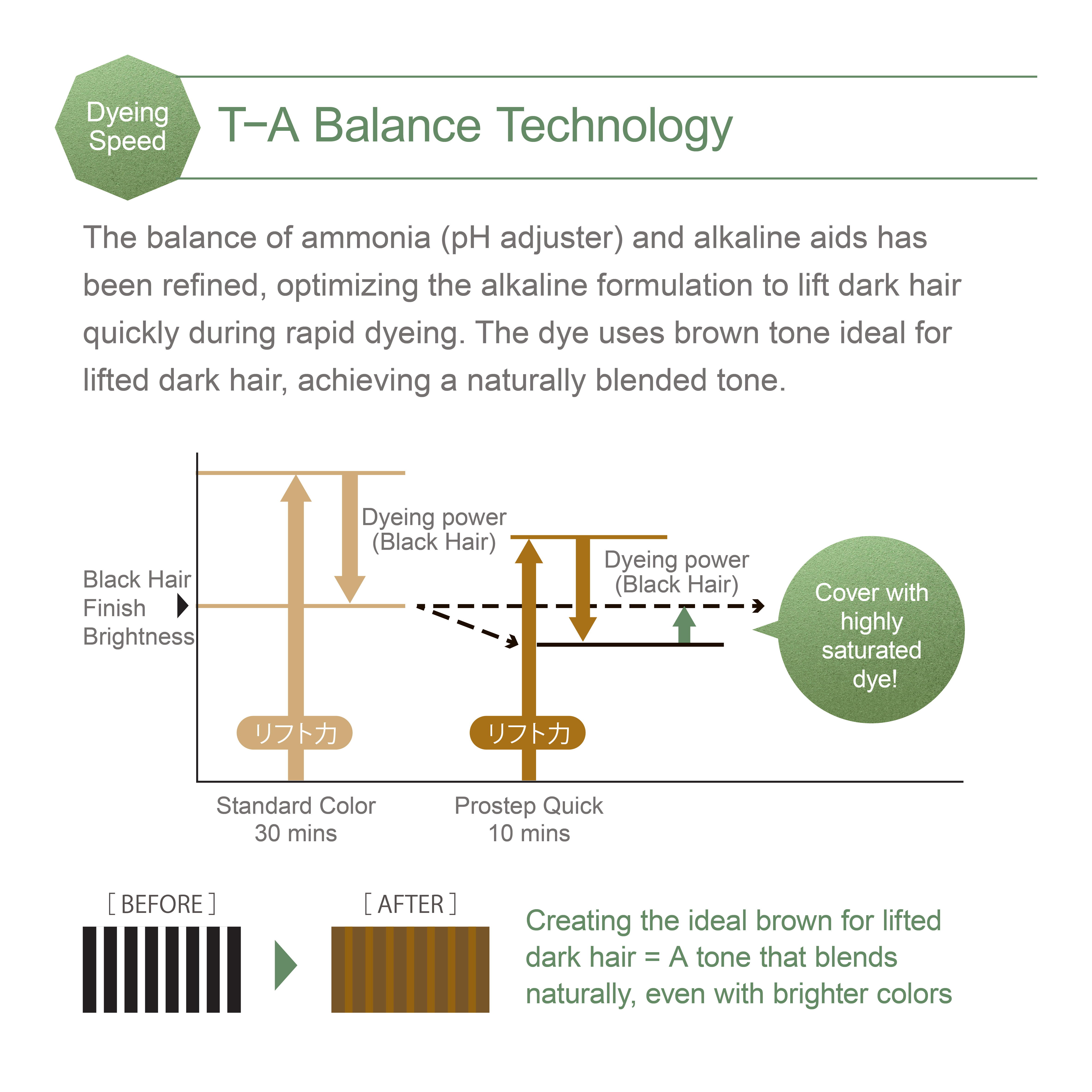 Prostep Quick offers a good balance of saturation and brightness, catering to customers seeking anything from natural to unique hair colors. Achieve beautiful results in just 10 minutes with the enhanced coloring speed and longer-lasting color retention.